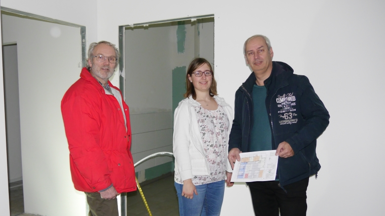 Auf Einladung vom Eigentümer haben sich in der letzten Woche Ernst-Reimer Saß, Ortwin Schmidt und Friederike Schmidt ein Bild von den Umbaumaßnahmen der Übergangskita in der Gebrüderstraße gemacht.
